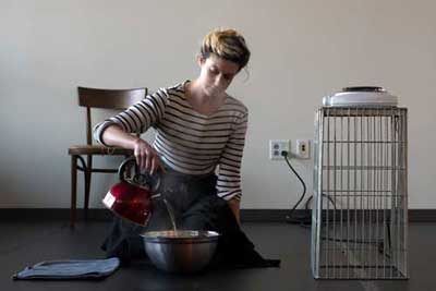 La poule fait semblant de manger du pain mouillé qu’elle picore jalousement dans le cou de sa macocotte mieux servie.