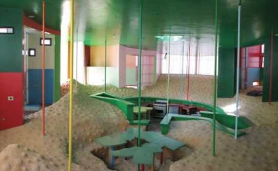 yet also being obtrusive and demanding new kinds of bodily engagement. Fig. 6: Bioscleave House (image courtesy of Joke Post/Arakawa+Gins). There is a danger that Arakawa and Gins's complex architectural surrounds will lose their effect over time as habituation reduces them to a familiar environment with familiar difficulties that get overcome automatically by habit. I have written about this danger elsewhere [5]. In this essay, though, I want to discuss a different danger, that without new social norms that encourage engagement, and new sites for that engagement, their kind of architecture would remain like a museum exhibition, an occasional foreground holiday or experimental lark, and could not have a continuing influence on bodily inhabitation. It needs to be more available and to be approached within social practices that define it as for daily life rather than for an exciting exception from daily life. For example Arakawa and Gins's Yoro park in Japan [6] is socially defined as an extraordinary space where one concentrates on orienting oneself and experiencing the park and its novelties. The contortions of the space and its contents are the primary focus. One goes to experience this as uniquely different, not to live in it as one would in a "normal" park, going for picnics, playing ball, watching the children. When we visited Yoro we were one of perhaps four couples in the large expanse. The overall effort was towards solitary and bemused contemplation plus physical exertion. It was an experience akin to visiting a museum, where works of art are enshrined for an experience which is defined as different from everyday life, providing moments that may help illuminate everyday life but which do not remain present. An apartment building or to a lesser extent a hotel designed along the lines of their Mitaka lofts in Japan [7] or the Bioscleave House on Long Island [8] would be places socially defined as to be experienced in the activities of daily living rather than themselves being the focus of attention. But as yet Arakawa and Gins have produced mostly demonstration projects, experiments, which are not socially defined as part of ordinary daily lives. Besides making their architecture more available as surroundings for daily life, there also would need to be new social norms which encouraged people to try living their daily lives in such "difficult" spaces. Arakawa and Gins want our lives, which try to concentrate on their aims and rituals while make architectural surrounds a neutral background, are to be confronted by an architecture which will not let go, spaces that demands self-conscious bodily engagement and works procedures on our bodies and perceptions. For their architecture to achieve its desired effects, there would have to be a combination of new architectural surrounds available for daily life plus a social definition that these surroundings are for more than occasional stimulating adventures. In short, it would take not just new buildings but also changes in social norms to make Arakawa and Gins's experiments more than experimental. Recognizing this, Arakawa and Gins have been trying to bring about such new social norms through their campaign against dying. "Making dying illegal" includes a plea for new social definitions and norms that would require their kind of architecture to be built and lived in [9]. Arakawa and Gins are trying to open up the possibility of their architecture being used on a daily basis by large numbers of people. The full implementation of the "making dying illegal" program would make it a necessity for everyone. In this, Arakawa and Gins share the modernist dream of shaping life