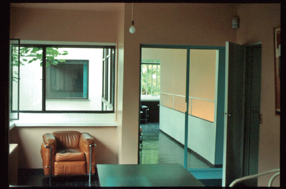 anew and making their kind of architecture unavoidable. Fig. 7: The interior of Le Corbusier's Villa la Roche outside of Paris. They closely parallel the demands made by Le Corbusier for a new mode of building that would correspond to what he saw as the dawning modern mode of life [10]. In both cases the architect is attempting to redefine both how one builds and how one lives in buildings. In his rhetoric Le Corbusier says that the new norms are already present and architecture needs to catch up with society and industry. He exaggerates the change already happening; his examples of streamlined wonders show more a possible mode of life than real new social norms. But he was right that economics and industry were pushing us into new modes of life. Arakawa and Gins do not have his kind of impersonal economic impetus behind their architecture. Yet it is true that in recent years there has been greater emphasis on healthy living, on bodily care and training, and more willingness to try unexpected and "foreign" exercises and diets. Feng Shui has become more prominent, and architects are becoming more attuned to studies in environmental psychology. People are more accustomed to the idea that their architectural surrounds may be influencing, for good or bad, their body, energy, and physical possibilities, as well as their psychological well-being. Such changes may make people more open to new social norms that might lead to importing some aspects of Arakawa and Gins's larger designs into more ordinary spaces. Inserting bits of Arakawa and Gins designs into already built ordinary spaces would parallel the way Le Corbusier and other early modernist architects moved into interior design, furniture, and accessories, thus affecting public taste and encouraging new behaviors. It is not accidental that the classic modernists such as Le Corbusier, Frank Lloyd Wright, and Mies van der Rohe strove for total control of one's environment. What seemed dictatorial was part of their effort to change social norms. Arakawa and Gins need new social norms that encourage people to live daily life in their difficult and ambiguous spaces. But it would be more accurate to say that what would benefit their work would be the collision of multiple social norms. The activities of daily life would go on, defined by their usual norms and requirements. But cross-cutting and challenging them would be the norms of mindfulness, bodily care, and a new precision that enriches daily routines. Colliding Systems Panel 11.1 in Arakawa and Gins' Mechanism of Meaning [11] urges us to "consider that any representation or system can be used as a map when paired with or plotted against an object or environment". An intervention into a familiar space might suggest new ways to map, divide, and rearrange its activities. Borrowing from Max Black [12], Paul Ricoeur's book on metaphor [13] explores how new meanings arise when two articulated systems are made to cross. For example if Romeo says "Juliet is the sun" a whole net of associations with the sun now get applied to Juliet: she is bright, life giving, she illuminates the world and dispels the dark, she would be dangerous to approach nakedly, she could burn you if you came too close, and so on -- there is no end to the things that could be elaborated out from the central metaphor. Each shows new aspects; Romeo can understand his relation to Juliet more precisely by talking about something else metaphorically [14]. We could apply this insight to systems of spatial organization. Hand someone a map of Manhattan and one of Chicago. Tell them to put the maps together. The task seems impossible but might provide new insight as the user was forced to make metaphorical connections between Manhattan's rivers, grid, parks, Broadway, with Chicago's lake, river, grid, and diagonal avenues. New York's difficult address system maps onto Chicago's easy one. Manhattan's boundaries at the rivers could be mapped to Chicago's El tracks or tiny streams. Conversely, Chicago's expanse could challenge Manhattan's sense of itself as so distinct from Brooklyn and Queens. Arakawa and Gins did something like this when they overlaid wandering
